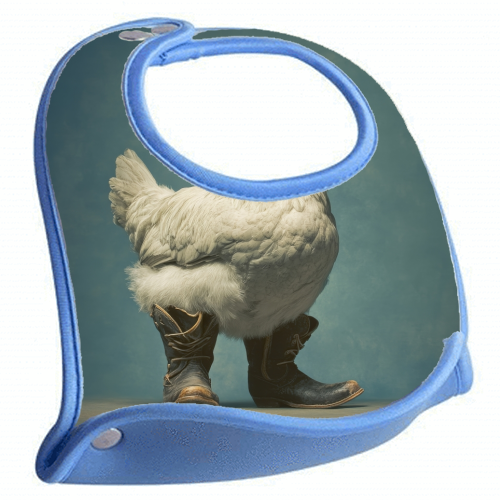 Neoprene Crumb Catcher Bib, Cute chicken with boots by DejaReve