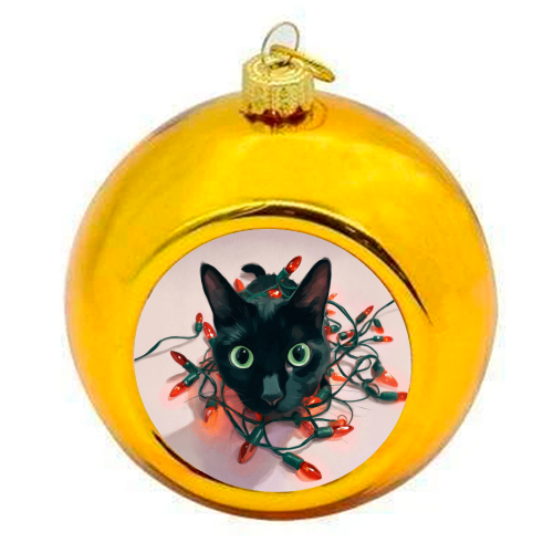 Green eyes, red lamps - colourful christmas bauble by DejaReve
