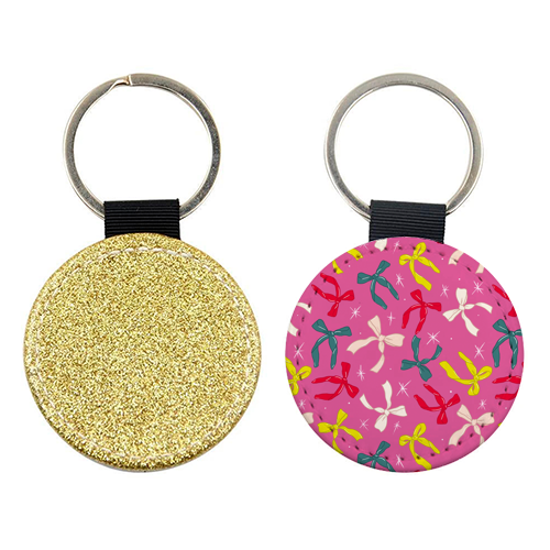Keyrings, Playful Ribbon Pattern On Pink by Ania Wieclaw