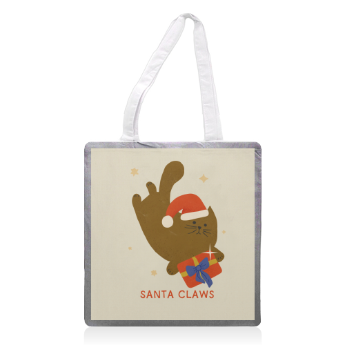 #kitten, #merry christmas, #santa, #playful, #cat lover gift, #animal pun, #kitty, #christmas gift, #funny christmas, #Meowy christmas, #claws, #holiday decor, #santa claws, #cute christmas cat, #brown tabby, #cat in santa hat, #cute holiday humor, #cat pun, #festive animal, #xmas cat, #blue ribbon, #red gift, #humorous cat, #ugly christmas sweater