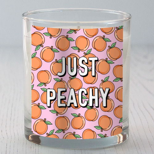 Just peachy! A positive phrase or saying illustrated with a peach pattern on a pink background.