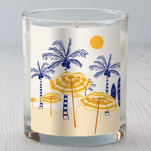 - Retro Yellow Beach Vibes – Palms, Umbrellas & Surfboards
