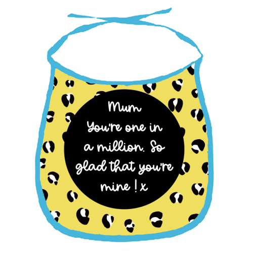 A graphic style design for the M=um whose one in a million featuring a leopard print pattern in yellow and black.