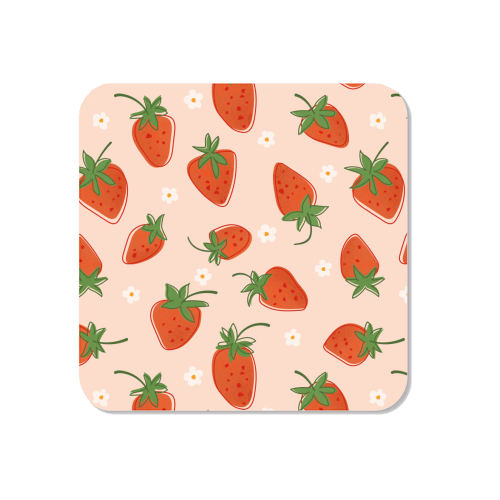 #fruit pattern, #summer vibes, #scandinavian pattern, #red berries, #green leaves, #retro inspired, #playful pattern, #strawberry art, #cute strawberry design, #fresh fruit print, #kitchen wall decor, #soft peach background, #minimal fruit art, #sweet berries, #botanical style, #cheerful wall art, #hand drawn fruit, #fruity summer decor, #strawberry blossoms