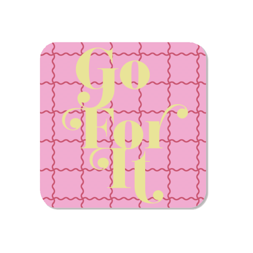 Make a statement with this bold funny "Go For It" quote. A vibrant typography on vivid modern checkered background.