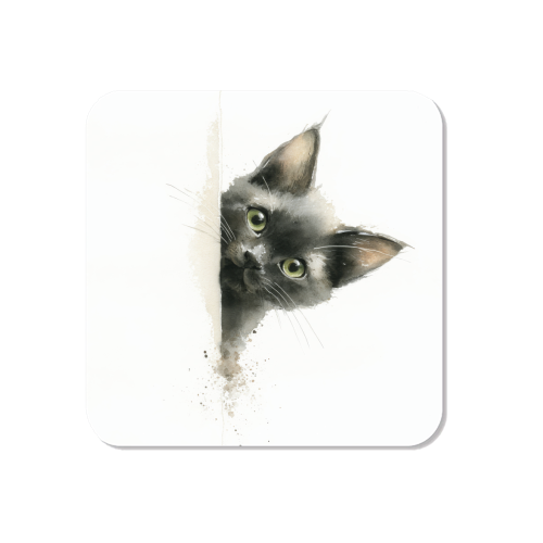 watercolor style, cute black kitty starring at you