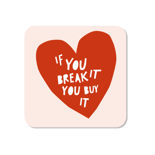 A bold, minimal red cut-out heart featuring the playful saying "If you break it, you buy it." A fun and cheeky reminder to handle love with care! Perfect for celebrating all kinds of love - on Valentine's Day and every day.
