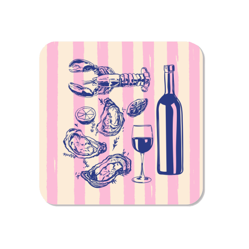 Magnets, Seafood & Wine – Retro Pink Stripes Illustration by EZbie