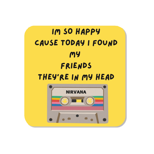 Retro Nirvana Cassette Tape. Yellow and multi colored with text