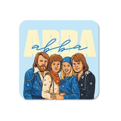 A cartoon style illustration of the icon ABBA on a wavy retro background.