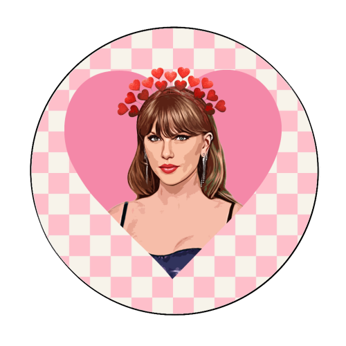 A cute Love inspired illustration of Taylor on a pink check background.