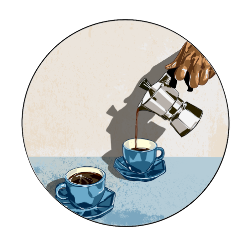 #art print, #nordic, #food illustration, #kitchen decor, #coffee art, #coffee shop, #retro kitchen, #espresso, #blue mugs, #moka pot, #morning coffee, #breakfast print, #aesthetic coffee, #barista style, #minimalist coffee, #modern vintage, #cozy mornings, #coffee for two, #flatlay coffee, #hand pouring coffee, #café culture, #espresso lovers, #stylish kitchen, #warm tones, #home cafe, #neutral tones, #illustrated coffee, #scandi kitchen, #food lovers, #coffee shop decor, #aesthetic morning, #kitchen wall art