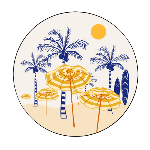 - Retro Yellow Beach Vibes – Palms, Umbrellas & Surfboards